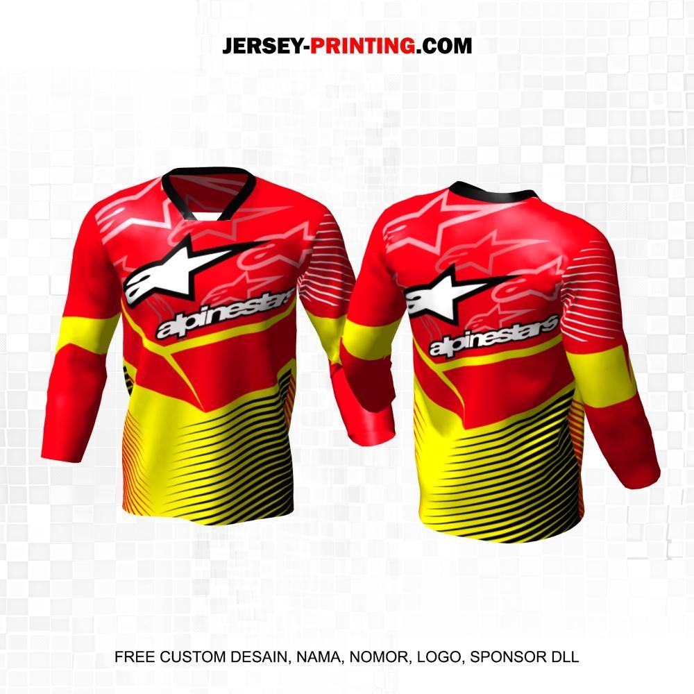 Jersey Racing Balap Merah Kuning Motif Abstrak Garis 33