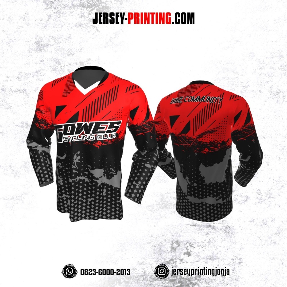 Jersey Gowes Sepeda Hitam Merah Abu Geometris Lengan Panjang