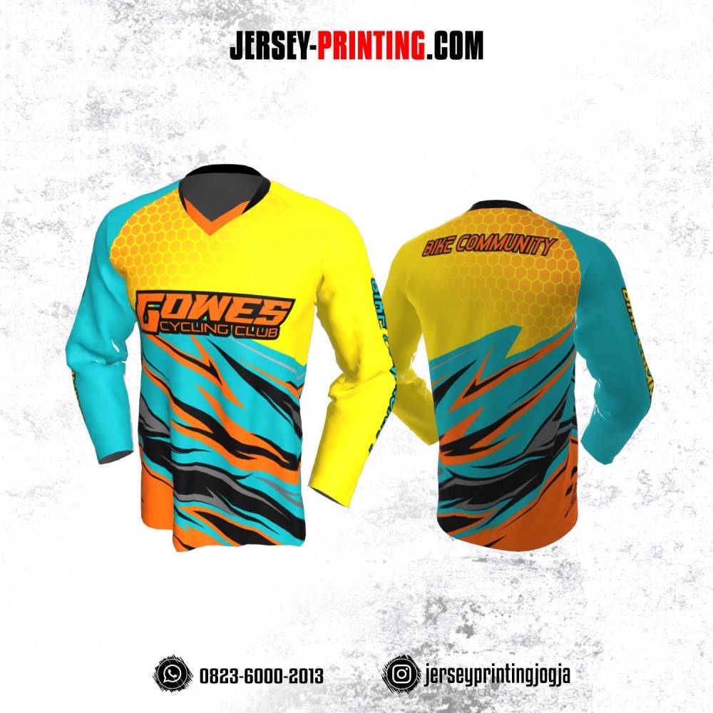 Jersey Gowes Sepeda Kuning Orange Biru Tosca Hexagon Lengan Panjang