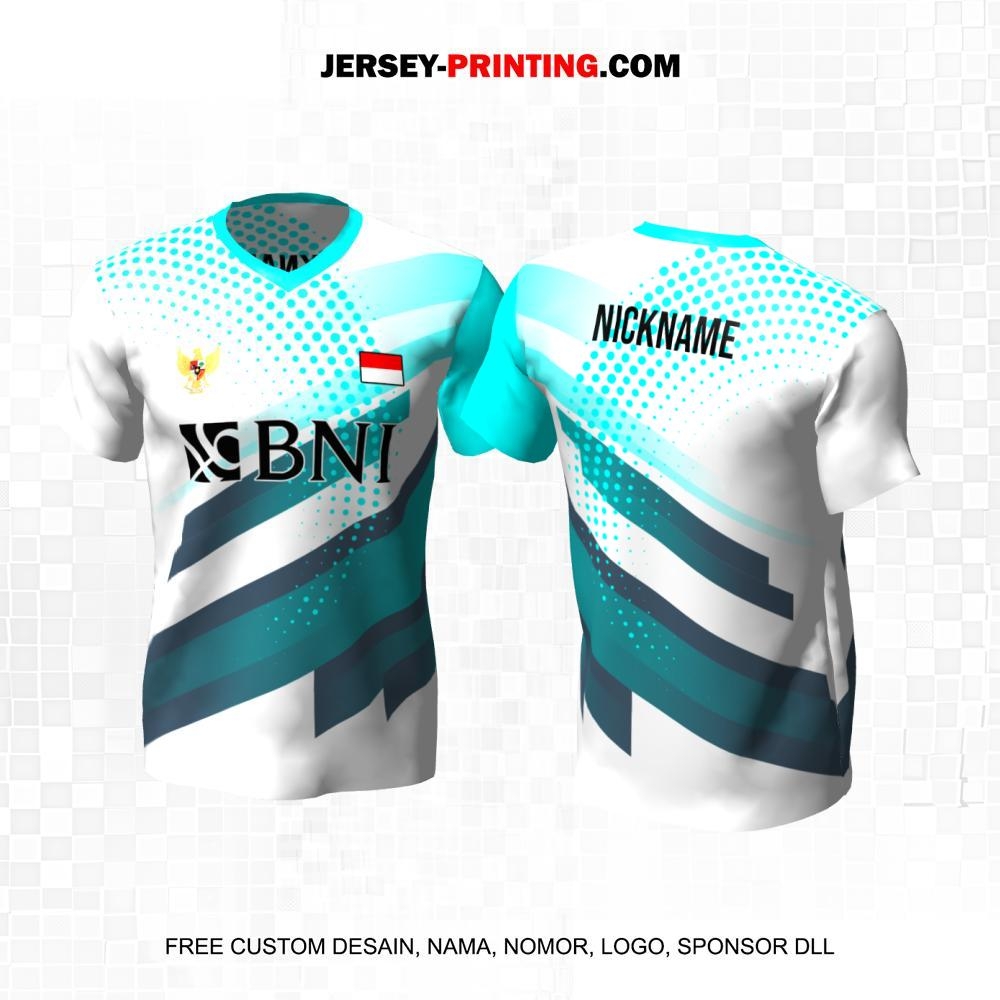 Jersey Badminton Putih Motif Abstrak Garis dan Polkadot 35