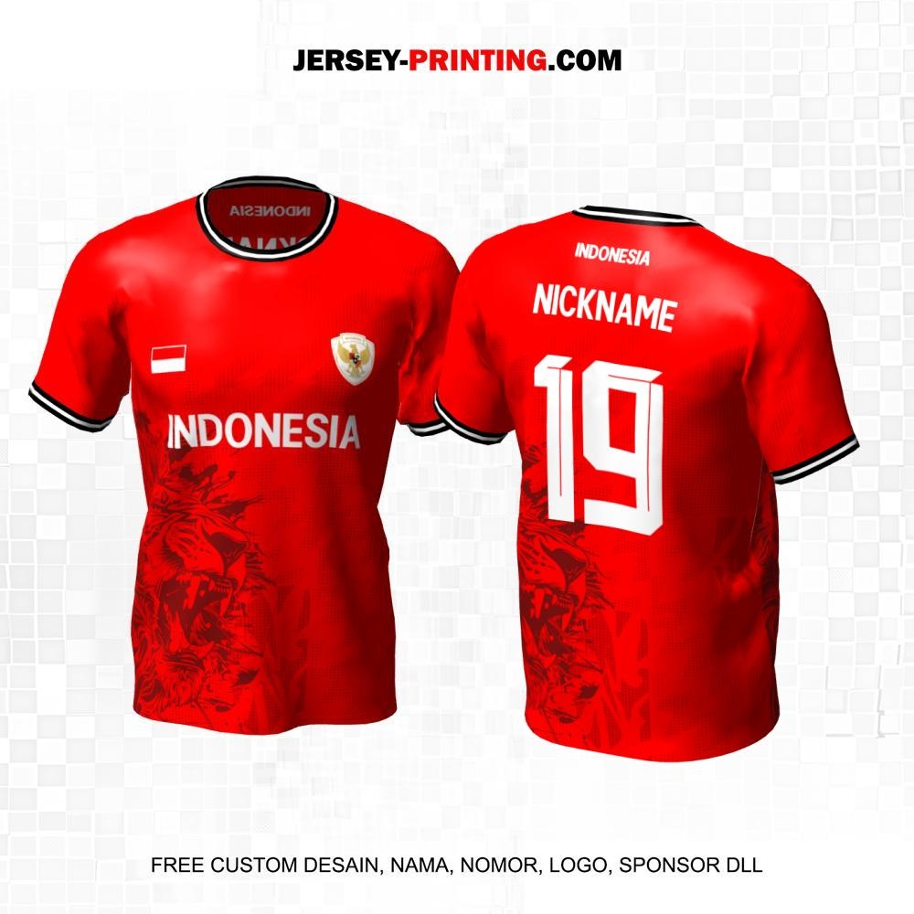 Jersey Futsal Timnas Merah Motif Abstrak Singa 79