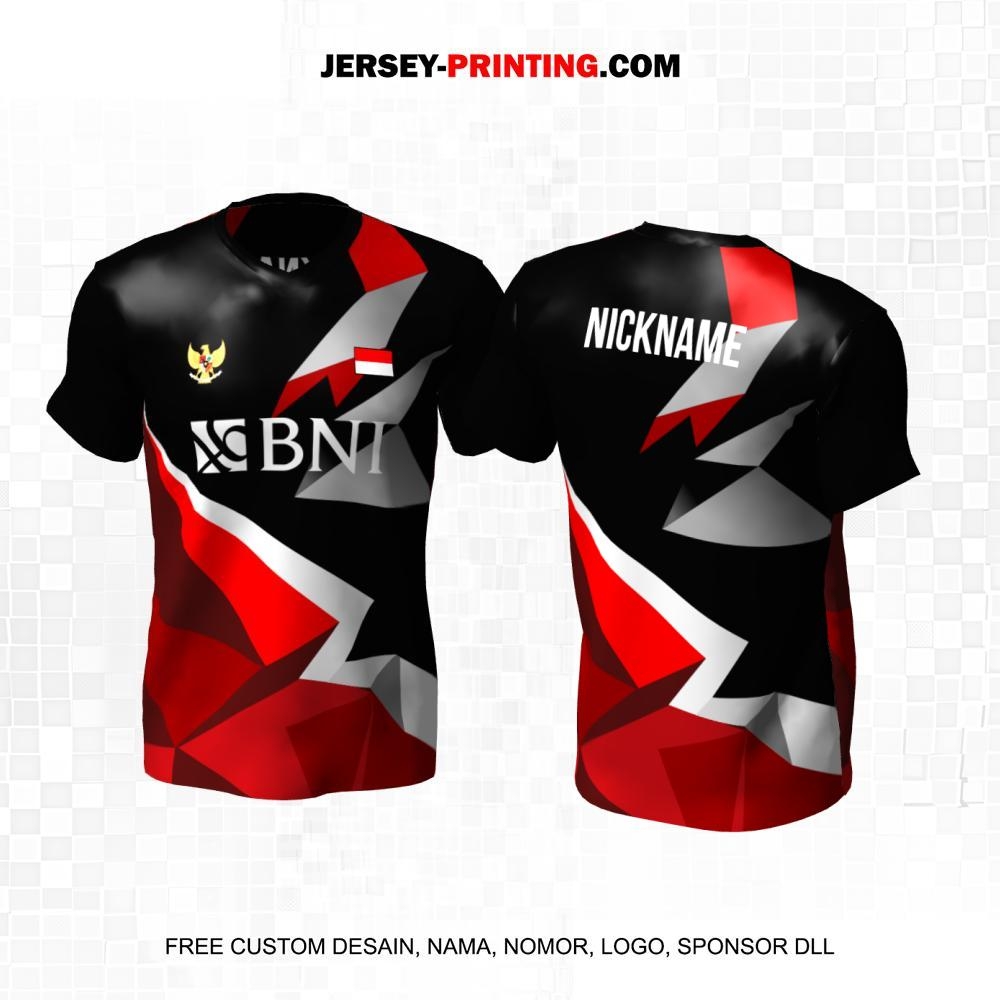 Jersey Badminton Hitam Merah Abu Motif Abstrak 53