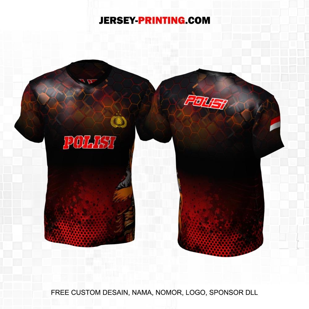 Jersey Polisi Polri Hitam Merah Motif Abstrak Polkadot Honeycomb 12