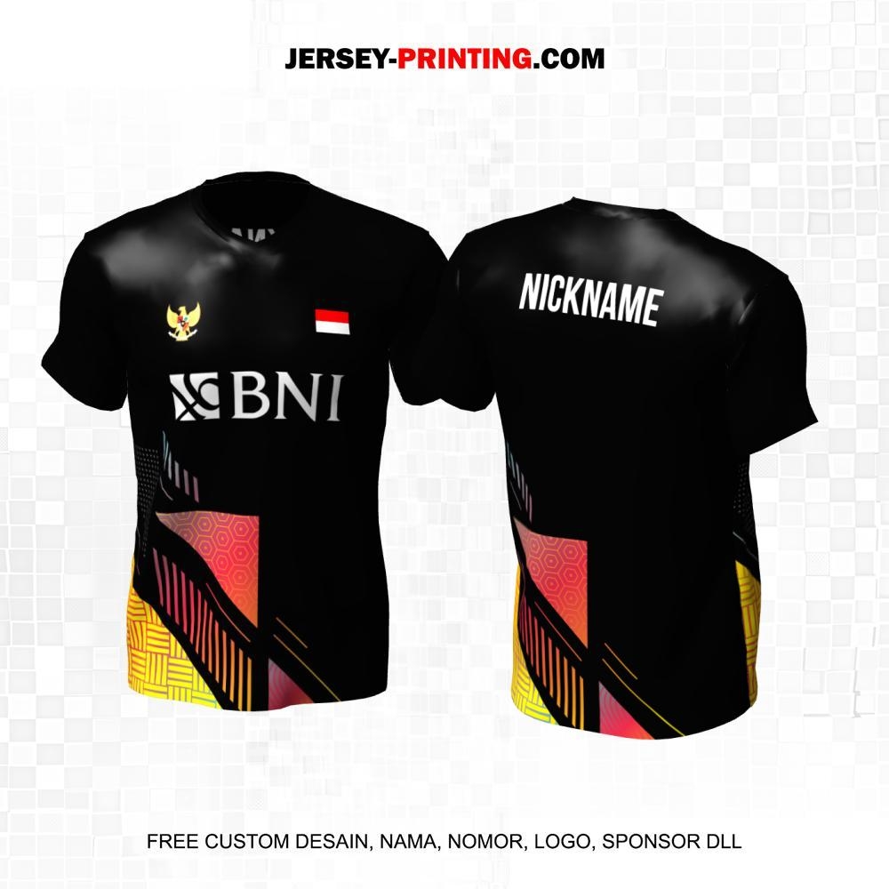 Jersey Badminton Hitam Motif Abstrak Garis Polkadot 67