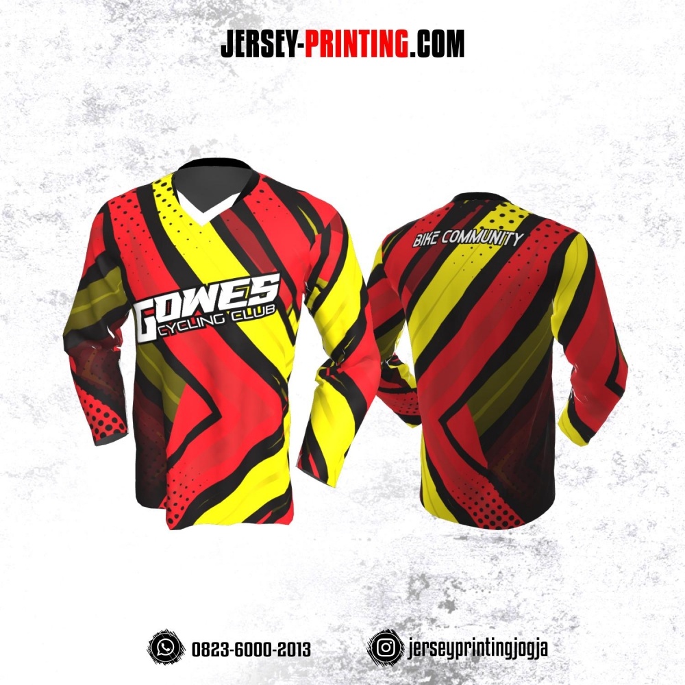 Jersey Gowes Sepeda Merah Kuning Hitam Lengan Panjang