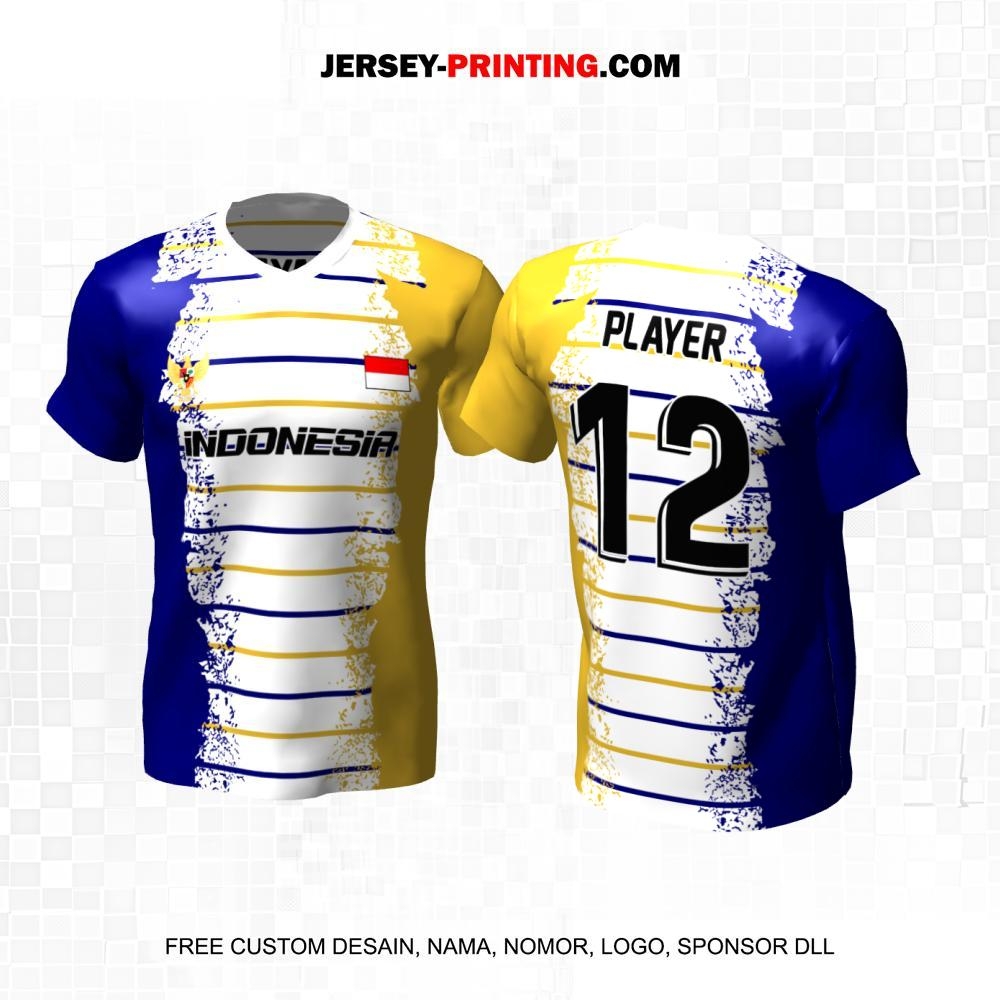 Jersey Futsal Putih Kuning Biru Motif Abstrak Garis 199