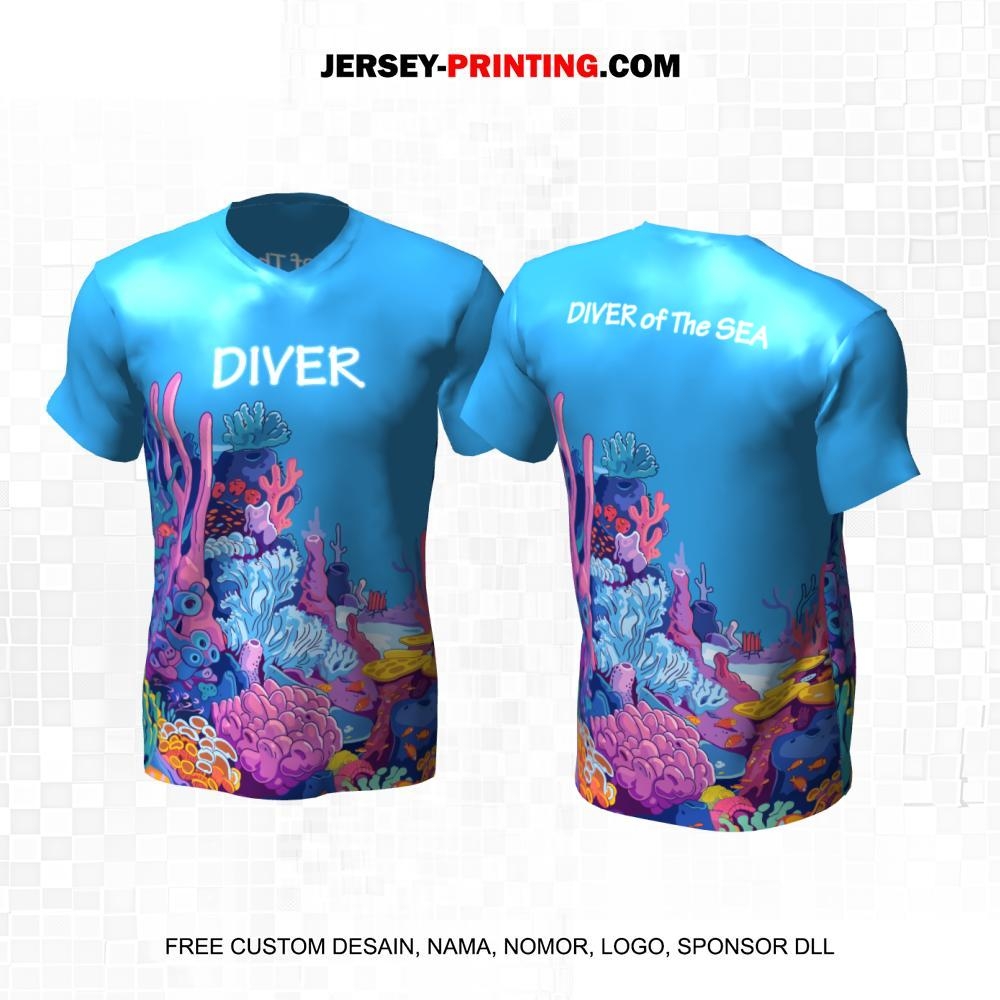 Jersey Penyelam Biru Motif Bawah Laut 1