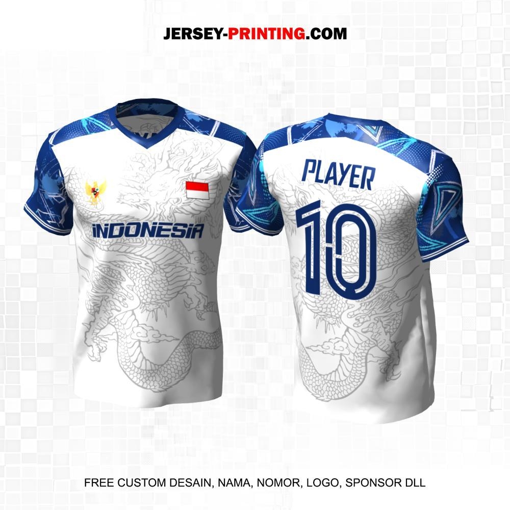 Jersey Futsal Putih Biru Motif Abstrak Naga 232