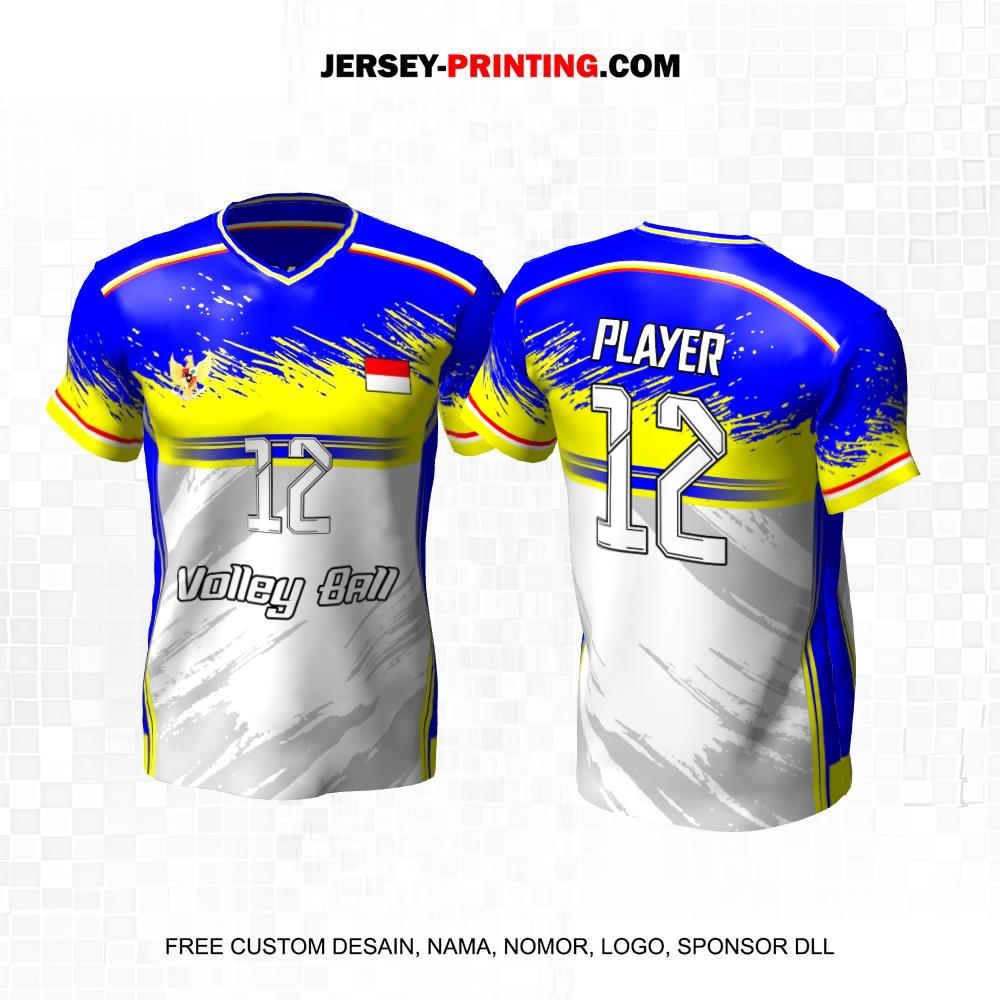 Jersey Volly Biru Kuning Putih Motif Brush Abstrak 34