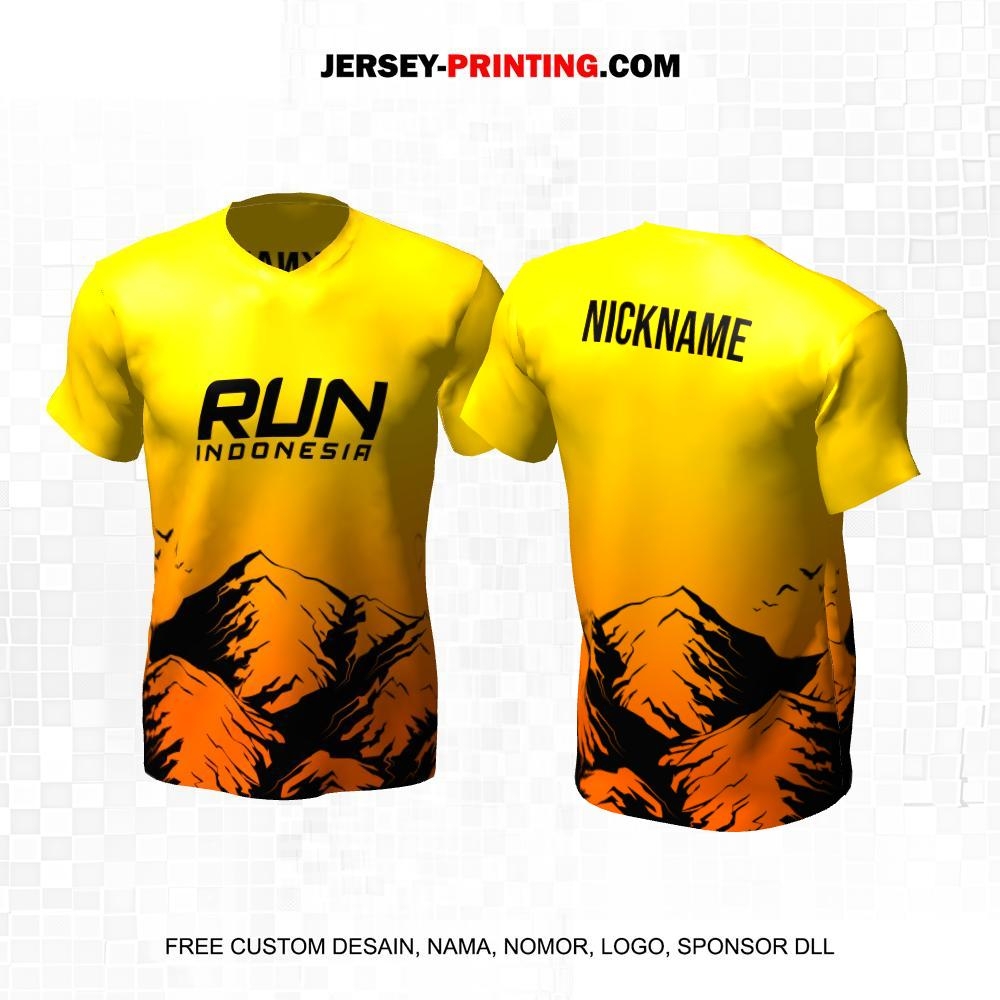 Jersey Lari Kuning Motif Pemandangan Alam Gunung 86